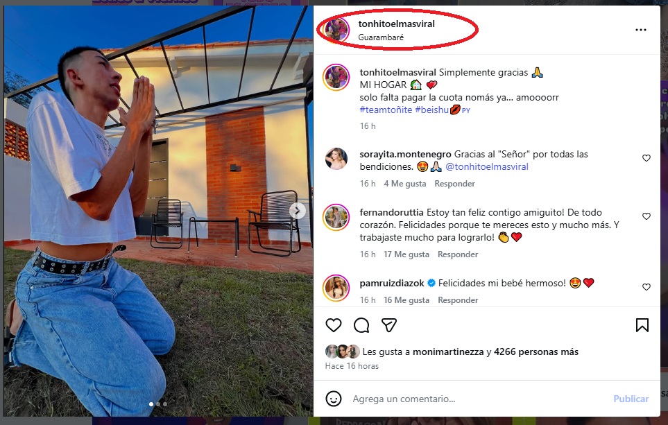 Ayer, Toñito Gaona un mediático que decora nuestro copetín farandulero, celebrado con sus seguidores el hecho de haber alcanzado su el sueño de tener la casa propia y ¿quién no quiere tener una casa propia? Nadie juzga eso, pero, al parecer, Toñito fue uno de los beneficiados con el programa Che Roga Pora 2.0